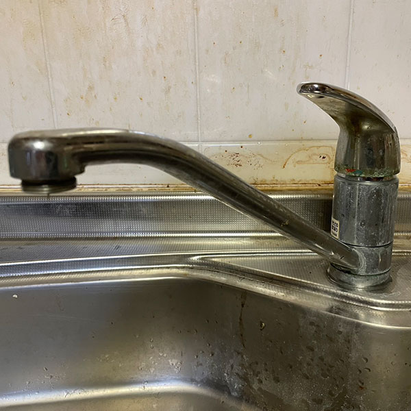 キッチンの排水口のつまりは、油カスなどの長年の汚れの蓄積が原因です。